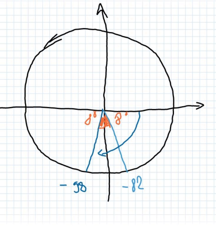 Rita upp enhetscirkeln med -82 och -98. Ser du att de är längst ner i var sin kvadrant? Arc sin ger alltid ett svar i första eller fjärde kvadranten (arc cos ger alltid i första eller andra).