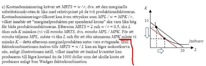 Jag vet att isokvantens lutning MRTS fås genom - (MpL/MpK) men varför kan man skriva MRTS som w/L för att få en lägre isokostkurva?