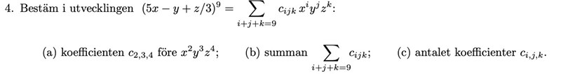 Är detta ett korrekt svar på min fråga i a) ? anledningen till att jag är osäker är eftersom jag inte tagit hänsyn till (5x-y+z/3)^9.