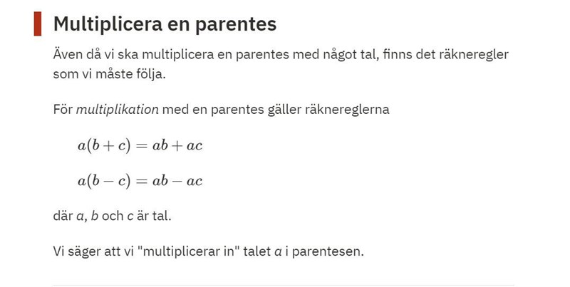 Ja men man löser ju inte uttrycket, man skriver om det. :) Man anger bara att a(b+c)= ab+ac Man ”räknar” inte ut vad det ska bli utan man skriver bara om uttrycket.