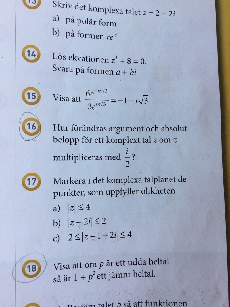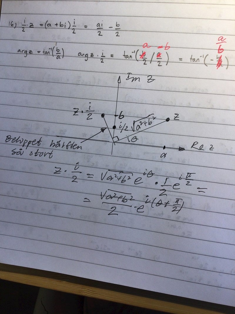 Tanken med uppgiften är nog att du ska uttrycka de båda komplexa talen på polär form och utnyttja räknereglerna för multiplikation av komplexa tal på polär form.
