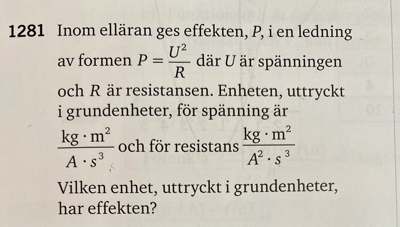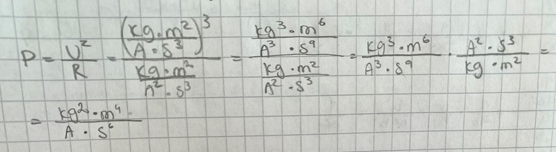 Du har upphöjt enheten för U till 3. Ska vara 2.