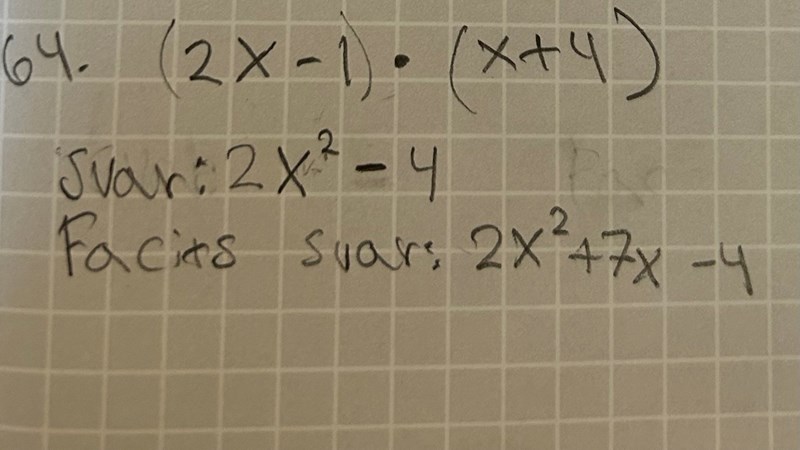 Hej! Har försökt förstå uppgift 2164. Förstår inte facits svar. Var kommer 7X ifrån. Andra bilden är mitt försök! Har skrivit ”svar:” för vad jag trodde va rätt och ”facits svar:” för när jag kollade vad det rätta svaret egentligen skulle vara. Hjälp uppskattas