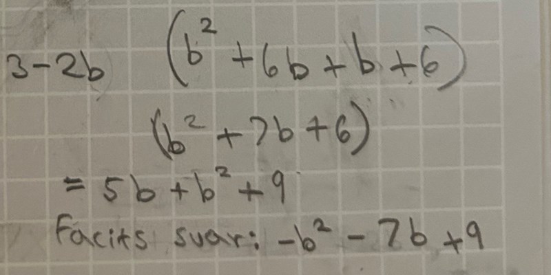 Almafla skrev:Men vänta vad får du till 5b. Förstår : b x b = b^2 och -1 x 6 = -6
