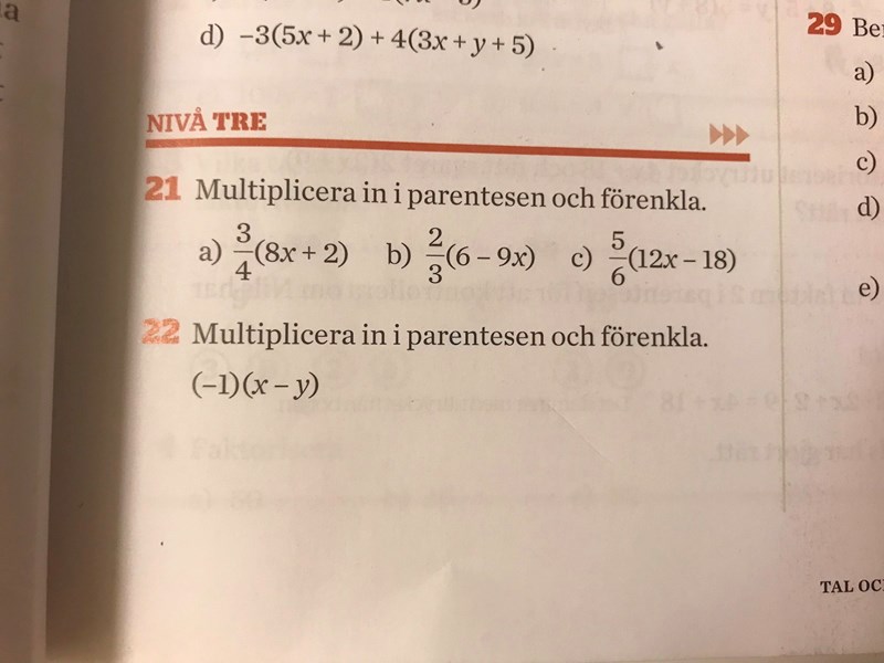 Du multiplicerar allt inuti parantesen termvis med 3/4.
