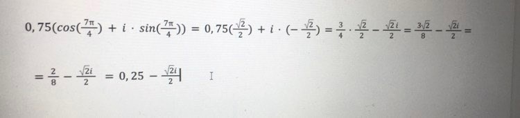 ja, då förstår jag. har jag då. Kan jag svara så? Ska svara i a+bi. Min nästa fråga blir ju då hur jag vet vad 7pi/4 har för värde...