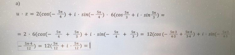 du gör fel på andra raden argumentet har fel nämnare på andra termen i cos och sin uttrycken. Står -5pi/4+5pi/4 ska vara -5pi/4+5pi/3