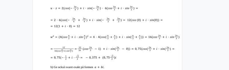 kanske inte skrivit den här, men b) uppgiften är "ge också svaret exakt på formen a+bi".