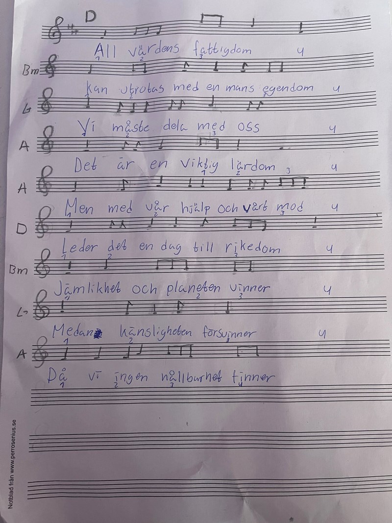 Här har ni mina papperna där jag har skrivit en låt, ackord och noter. Skulle vara så glad om någon utav er kunde kolla på dessa papper och se om jag har gjort rätt. :)