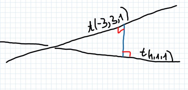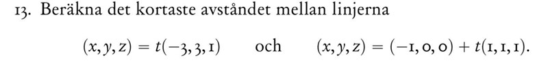 ... som jag får slarvfel på gång på gång. Jag repeterar några gamla uppgifter och försöker räkna rätt avstånd mellan två linjer: