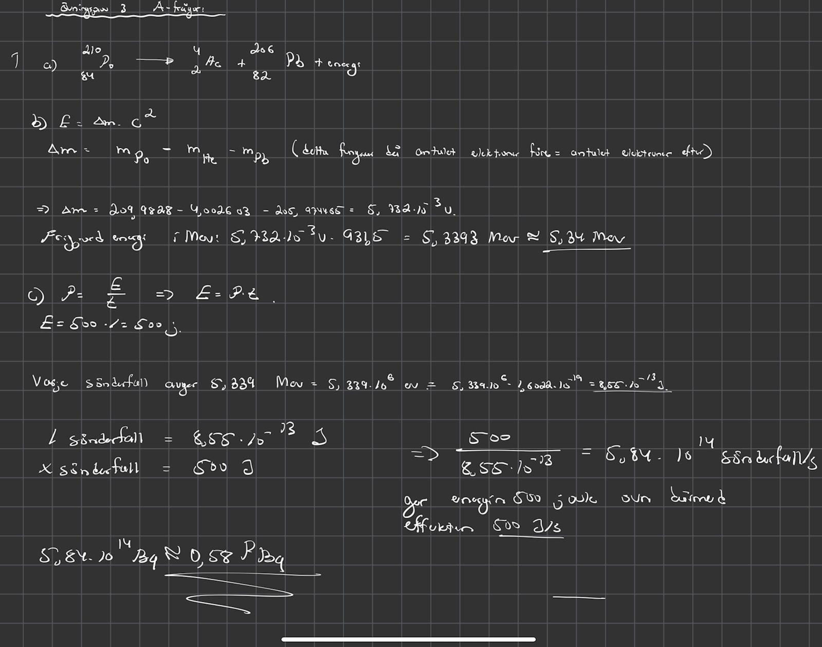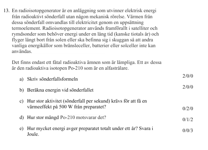 Hej, jag har hittat en svår uppgift om sönderfall och aktivitet på nätet men har inte tillgång till facit. Jag undrar om någon skulle kunna ta sin tid och kolla om jag har gjort rätt. Det hade varit till stor hjälp. Här nedan skickar jag både fråga och svar:
