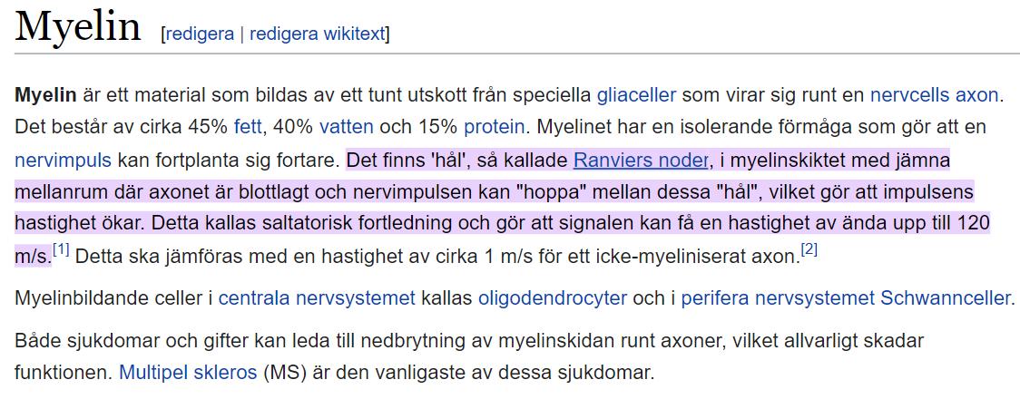Hej ! Jag har fastnat lite på följande markerade stycke, förtstår inte riktigt vad som menast med att nervimpulsen hoppar , blir tacksam för en förklaring!