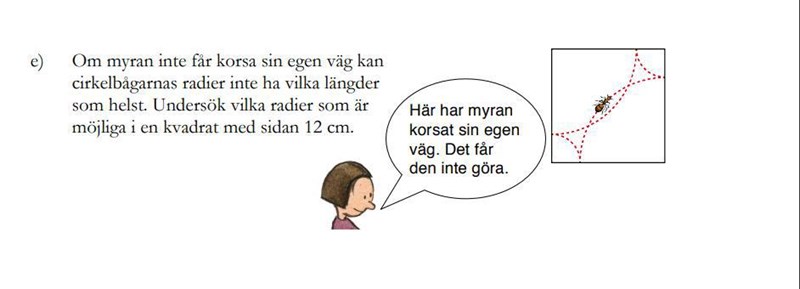 joculator skrev:Det verkar som at myrans väg bestäms av att man ritar kvartscirklar med mittpunkter i hörnen. Cirklarna får inte korsa varandra. Vägen skall vara sammanhängande.