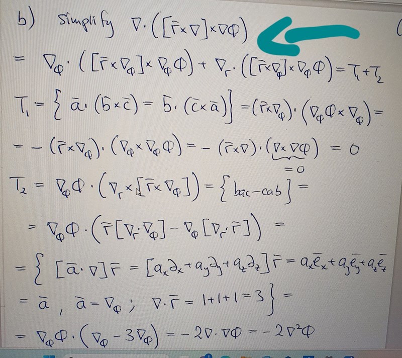 Fråga igen. Ok, I boken står att nabla ikte en vektor. Så mitt fråga är hur det påverkar nabla beräkningarna?? Hur funkar det med nablaräkning? Ska nabla opereras på allt??