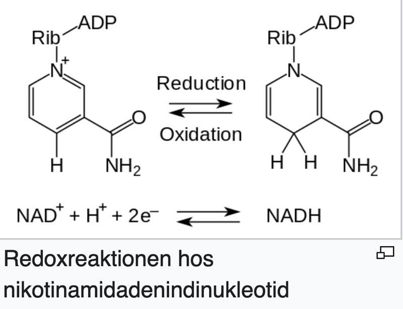 Just denna förmåga att omorganisera bindningarna i nikotinamidringen, gör att elektroner lätt kan tas emot av NAD+ och lämnas ifrån NADH. Det är en kombination av de delokaliserade dubbelbindningarna och kvävets förmåga att ta emot elektroner.