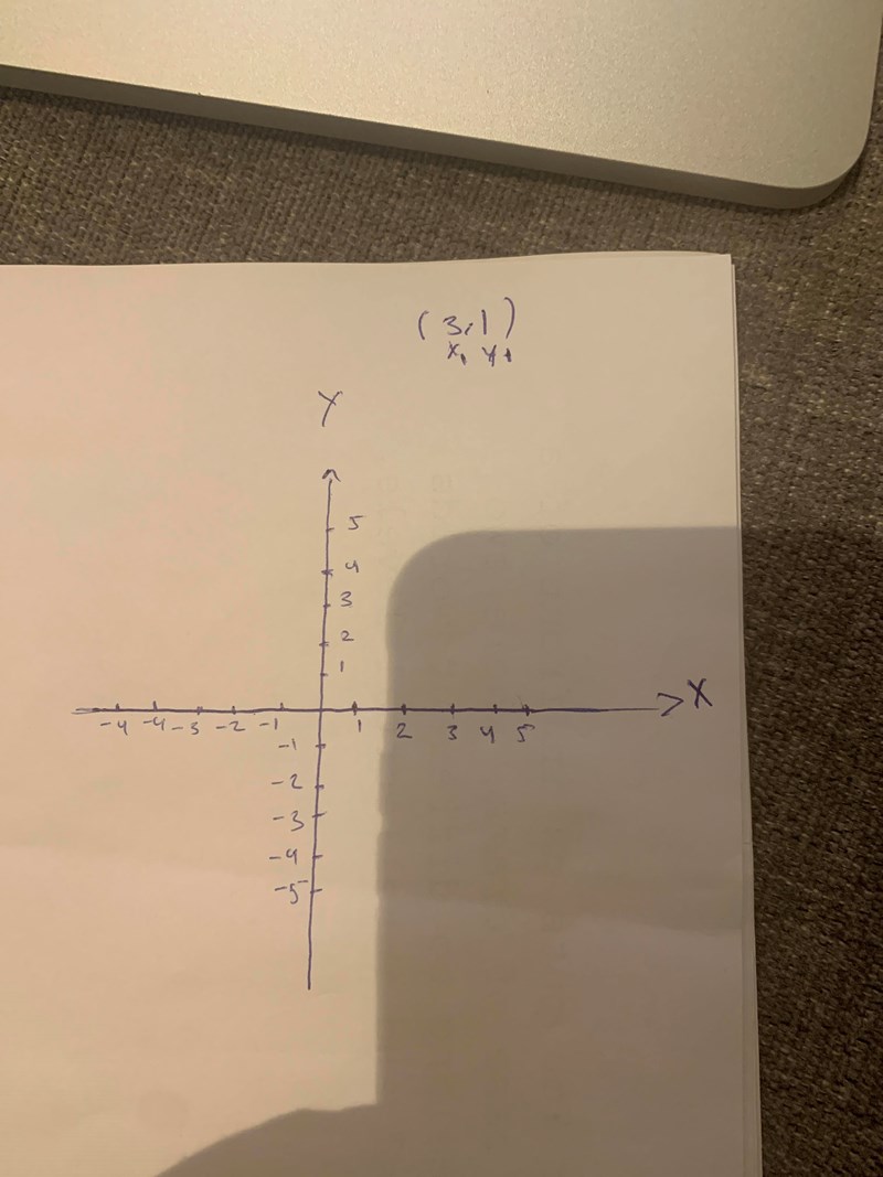 Ja det finns bara en punkt så du kan inte räkna lutningen mellan två punkter. Med ord istället först då, vad betyder det att två linjer är parallella?