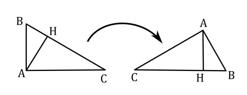 Rita triangeln, kalla kateten AB för x, kateten AC för y och höjden AH för h.
