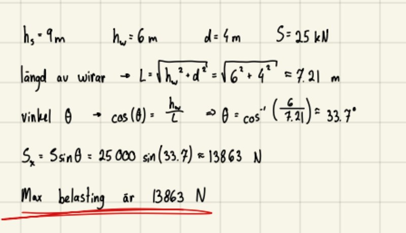 Ture skrev:FRågan är hur stor kraften F kan vara som mest, du har beräknat max för snörkraftens horisontella komposant. Det ser rätt ut.