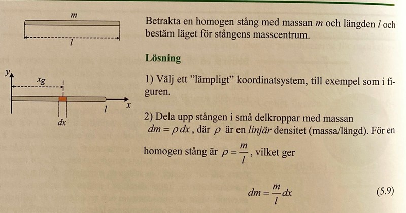dvs. massa = densitet multiplicerat med volym, men enligt uppgiften är det dvs. densitet multiplicerat med längd, vilket verkar underligt. Det nämns att det är linjär densitet, jag har aldrig hört detta innan, ska man förutsätta detta vid varje 2D problem?