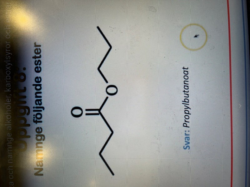 Hej! Hur kommer det sig att den här estern namnges till att vara propylbutanoat? Jag förstår inte alls hur man ska tänka här.? Obs. Det gick inte att ändra riktning på bilden.