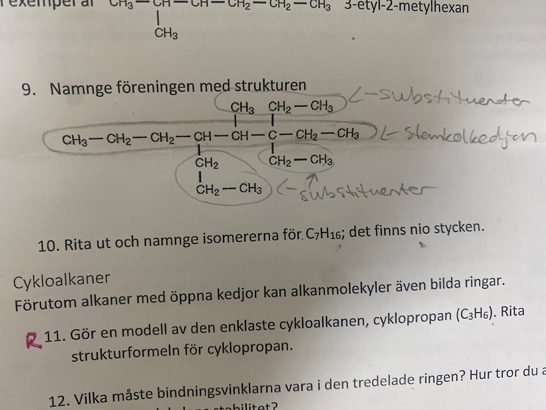 Börja med att identifiera stamkolkedjan och sutstituenterna, vilka är de?