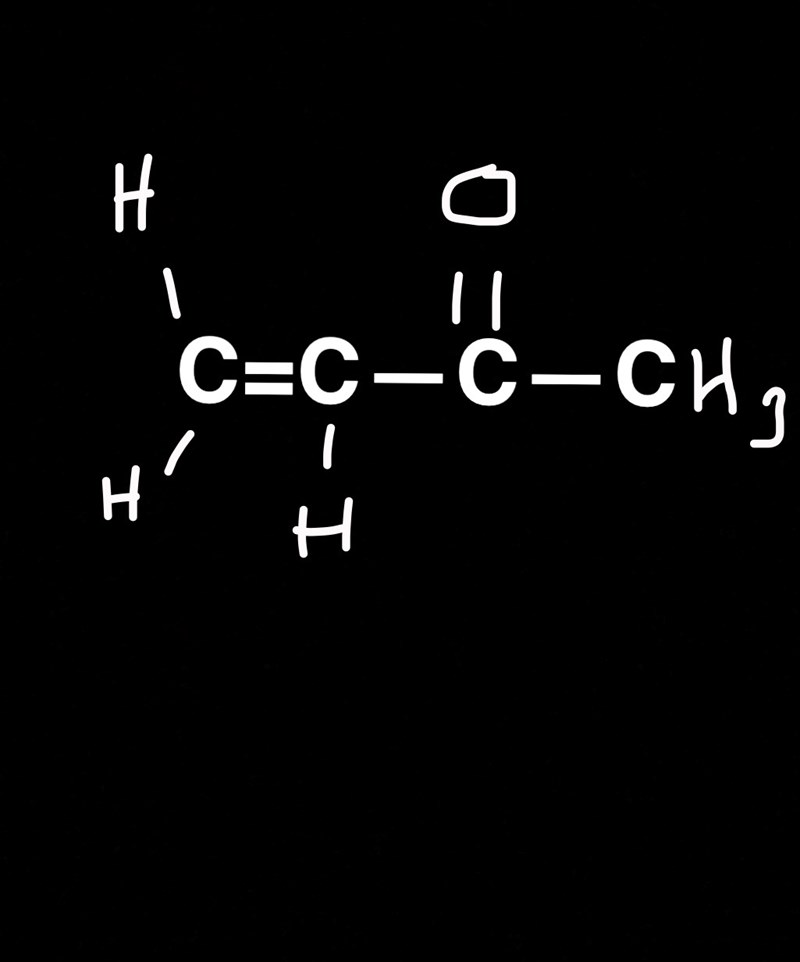 Jag behöver hjälp med att namnge denna keton. Jag har hittat på den själv, för att utmana mig själv. Vet inte om den är möjlig att namnge. Om dubbelbindningen på vänster sida egentligen skulle vara en enkelbindning, hade ketonen hetat 2-butanon. Längre kommer jag inte.