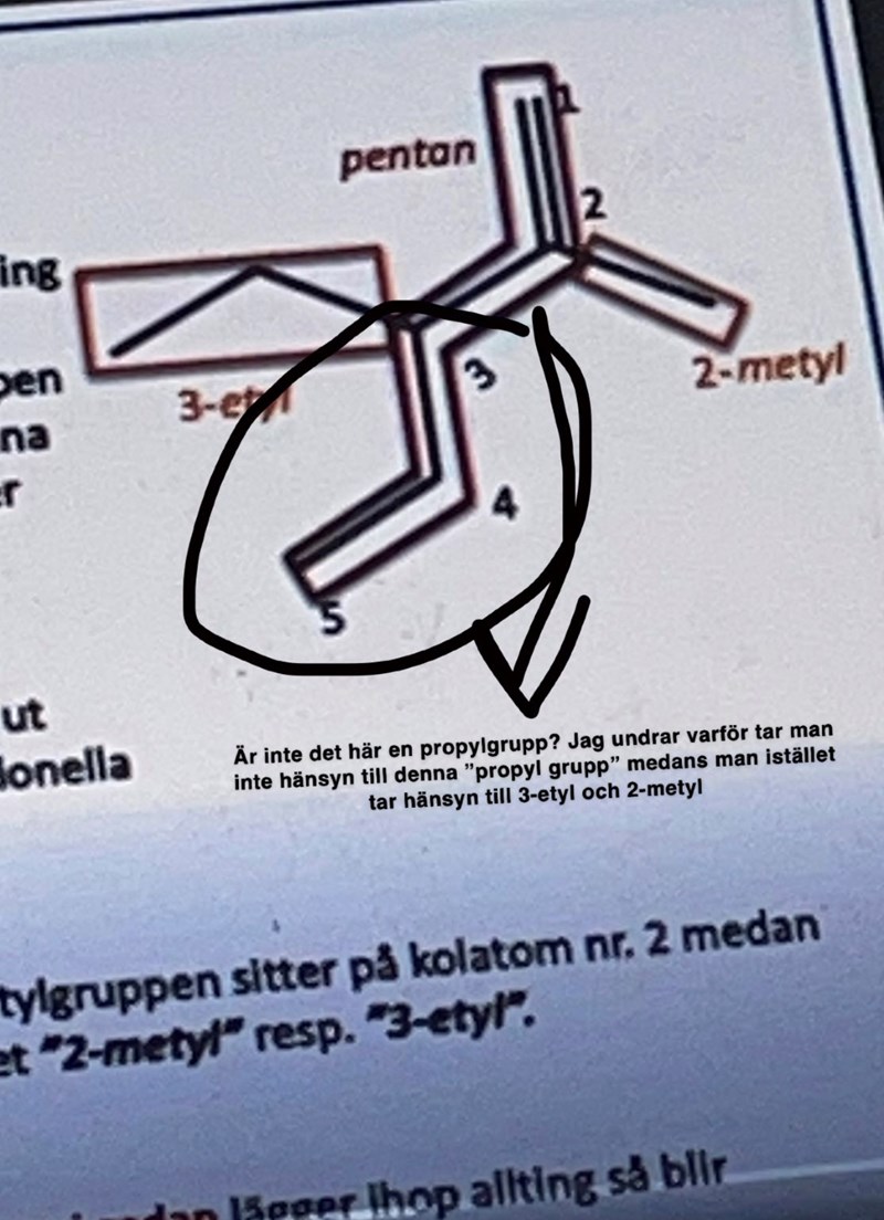 Pentan är den största (högst prioritet), sedan etyl, och sist metyl. På så vis behöver du inte beskriva mindre delar.