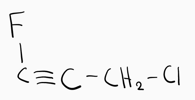 Om facit är 3-fluor-1-klorpropyn är det omöjligt att veta hur man ska rita upp molekylen om numret för trippelbindningen inte finns med i namnet.