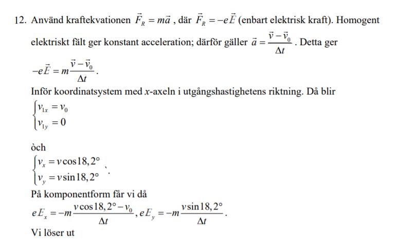 Men om vi istället endast har ett elektriskt fält i -led som påverkar objektet så är det som är skilt från 0 och som är 0.