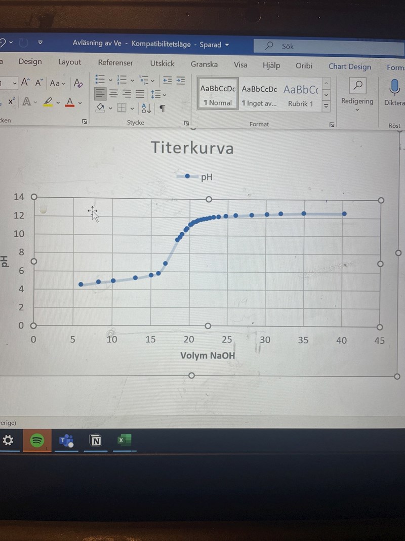 tror inte halvtitrepunkten är 8,75. för kurvan startar vid 6,1 ml. borde jag inte då ta talet som ligger mellan 17,5 och 6,1 ml?