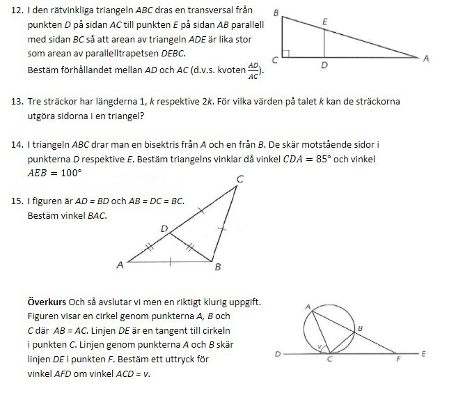 På 6:an: om BCD är likbent och rätvinklig kan man använda sig av Pythagoras sats för att få reda på hur lång BC eller BD är, då vi vet vad CD är.