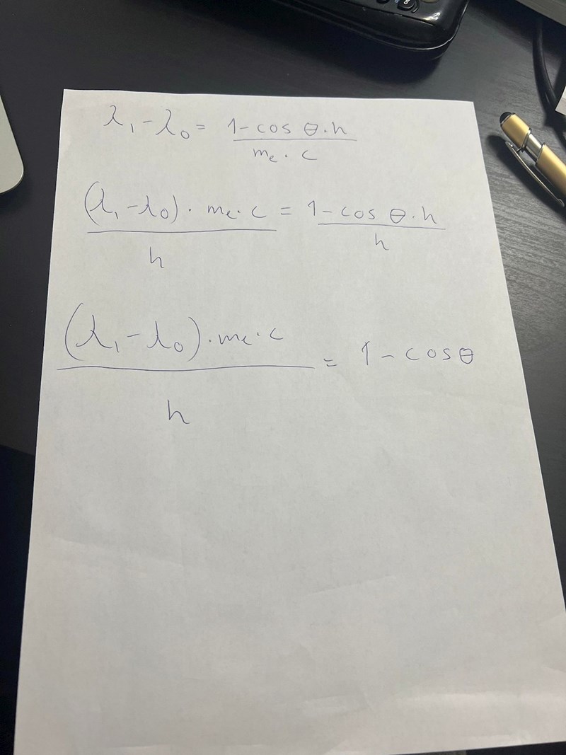 Jag vet att jag ska använda mig av comptonspridnings formlen för att beräkna hur många grader (theta)