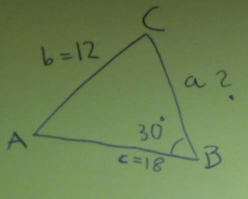 Har en uppgift som ser ut såhär; "I triangeln ABC är sidan AB=18cm, sidan AC=12cm och vinkelnB=30. Beräkna längden av BC med