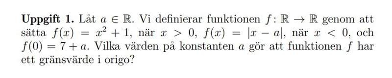 När har funktion gränsvärde i origo med konstant a