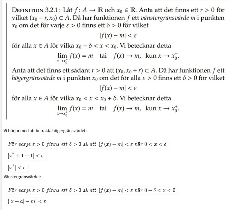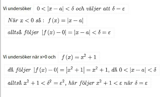 Jag tror inte heller det krävs något --resonemang här. Börja helt enkelt med att titta på höger- och vänstergränsvärdet för runt . Dessa måste vara lika för att gränsvärdet ska existera.