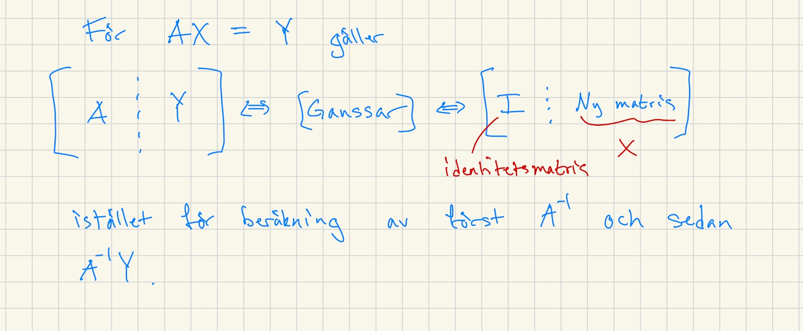 och sedan löst den i ett enda gauss-steg som du gör för en ekvation på formen AX=Y.