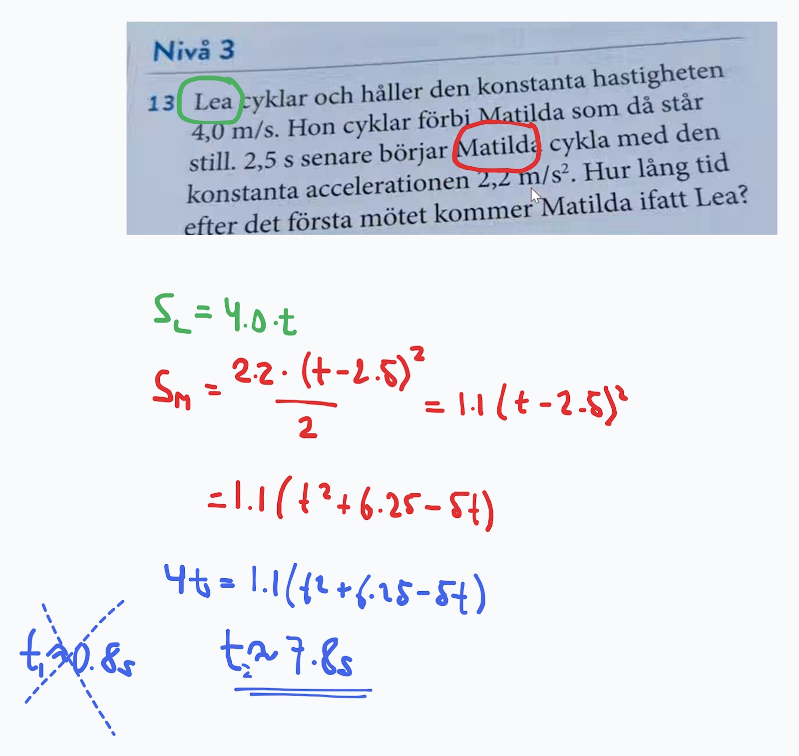 om du sätter sLea=sMatilda     kan du beräkna t.