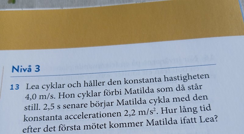 Frågan är när kommer Matilda ifatt Lea. Dvs när har du kommit lika långt från en lämpligt vald startpunkt.