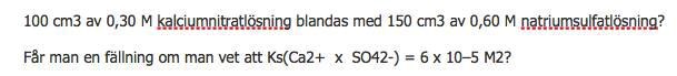 Vilken är koncentrationen av kalciumjoner i blandningen? Vilken är koncentrationen av sulfatjoner i lösningen? Vad blir produkten av de båda koncentrationen?