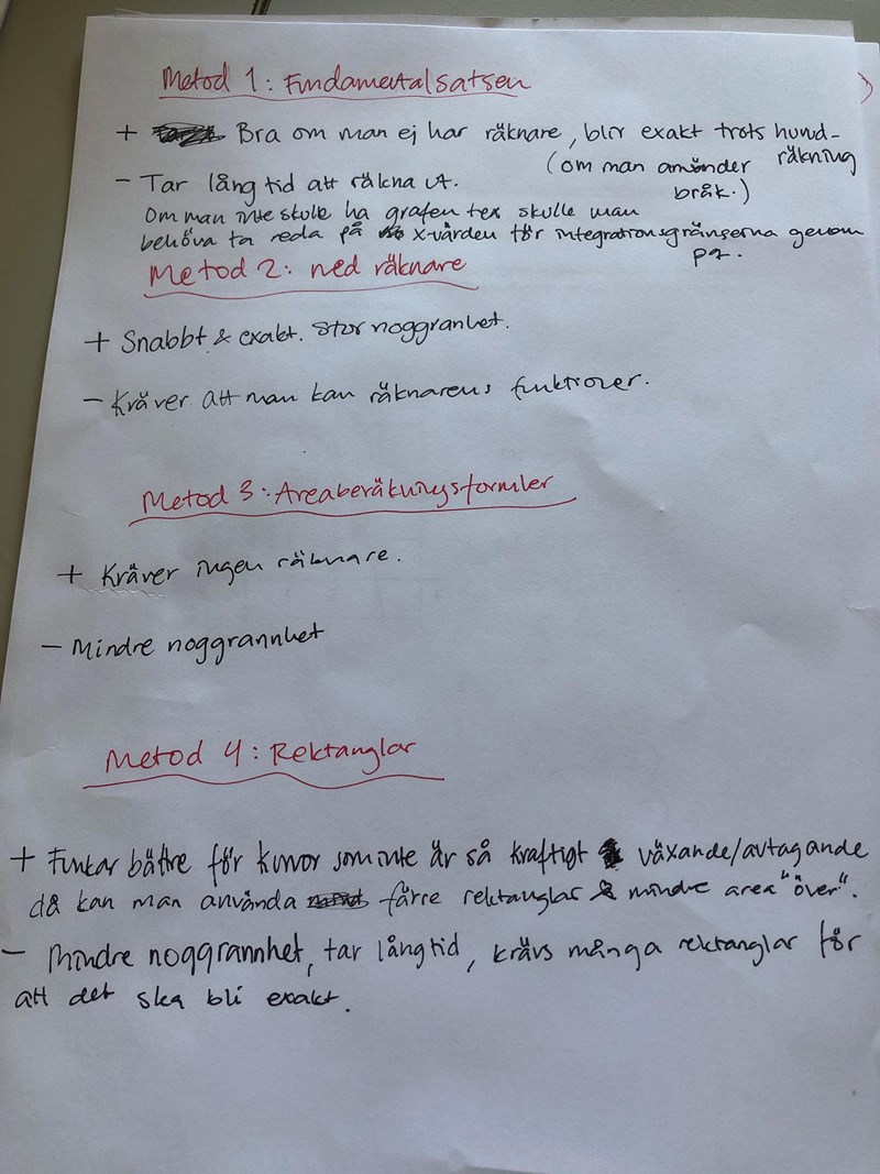 Jag har en uppgift då jag ska fundera kring när vilken metod kan vara bäst lämpad att använda sig av för att beräkna en integral. De olika metoderna är: