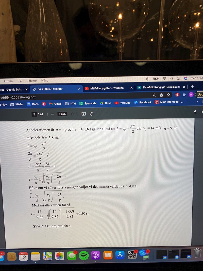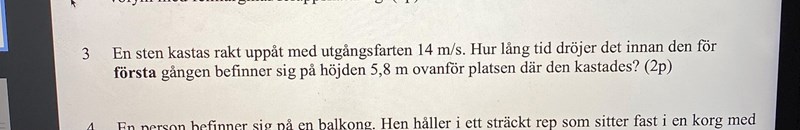 ...men tyngdaccelerationen är ju neråt, så då får den värdet -9.82 m/s2