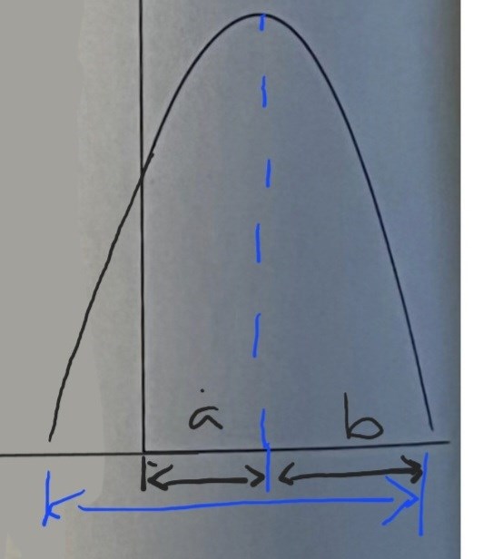Aha okej! Så det är endast vid symmetriska kurvor som halva tiden har gått vid den högsta punkten?