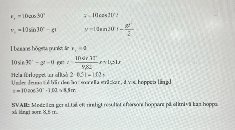 Detta gör mig förvirrad. Ifall det nu är så att halva tiden har gått av ett kast vid dess högsta punkt, varför går det då inte att halvera tiden som används i beräkningen av y i exempel 1?