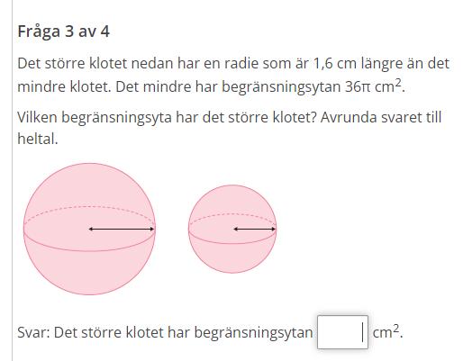 Lilla klotet har arean 36*pi cm2