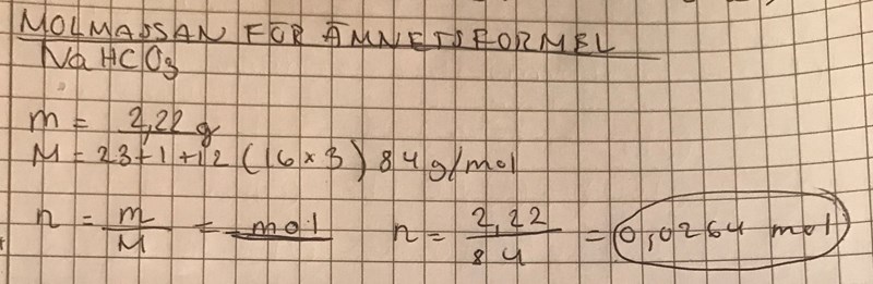 Det jag vet är att måste hitta molmassan först för NaHCO3