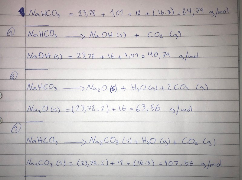 1. NaHCO3 (s) ----> NaOH (s) + CO2