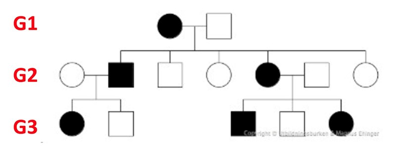 Men om det är dominant, varför är inte alla barnen i generation 2 och 3 (G2, G3) sjuka?