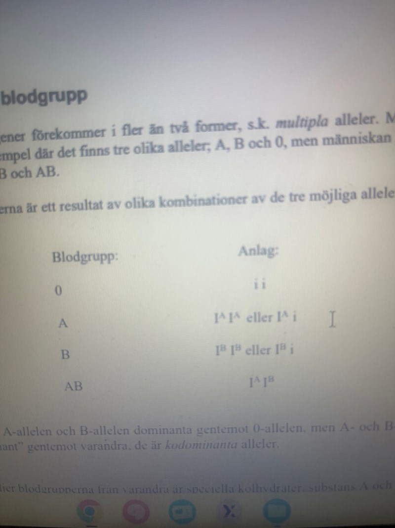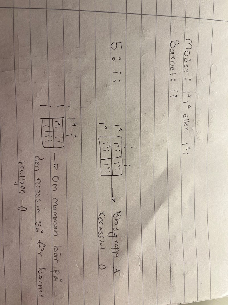 Skrev olika kombinationen t ex om pappan har B så kan han ha I^b I^b eller I^bi