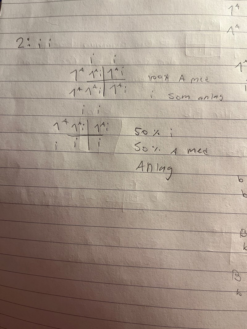 Vilken kombination barnet får beror ju även på mammans anlag - så det kanske är enklare att börja med hennes anlag, och fundera över vilka kombinationer av anlag som hon måste ha givit till barnet.