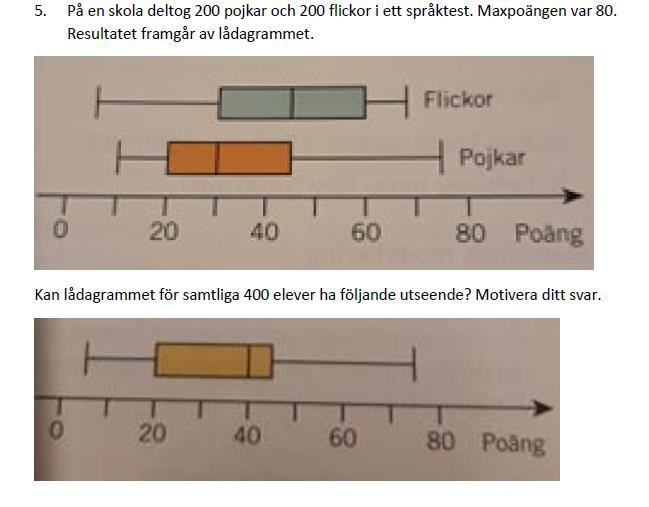 Medianen för samtliga elever måste ligga mellan medianen för flickorna och medianen för pojkarna. Stämmer detta i den nedre bilden?